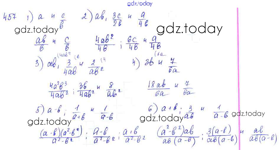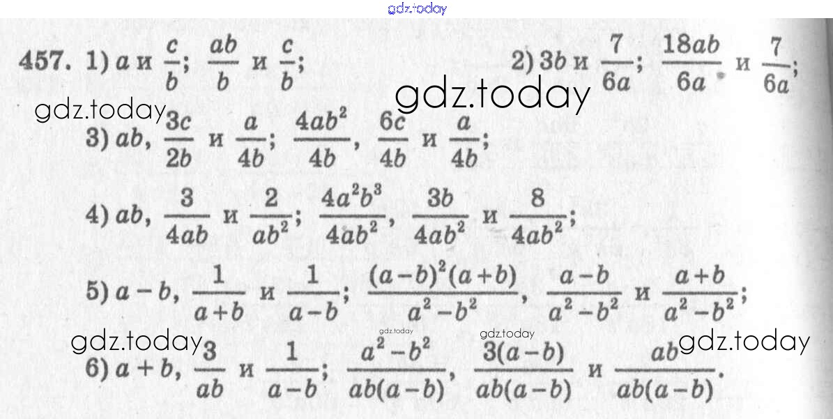 На страницах сайта gdz.today вы найдете учебный и вспомогательный материал, направленный на улучшения знаний школьной программы. ГДЗ - онлайн мир знаний §25. Приведение дробей к общему знаменателю Решение к главе 5. Алгебраические дроби 457 Учебнику по Алгебре для 7 класса Колягин, Ткачёва Просвещение 2014