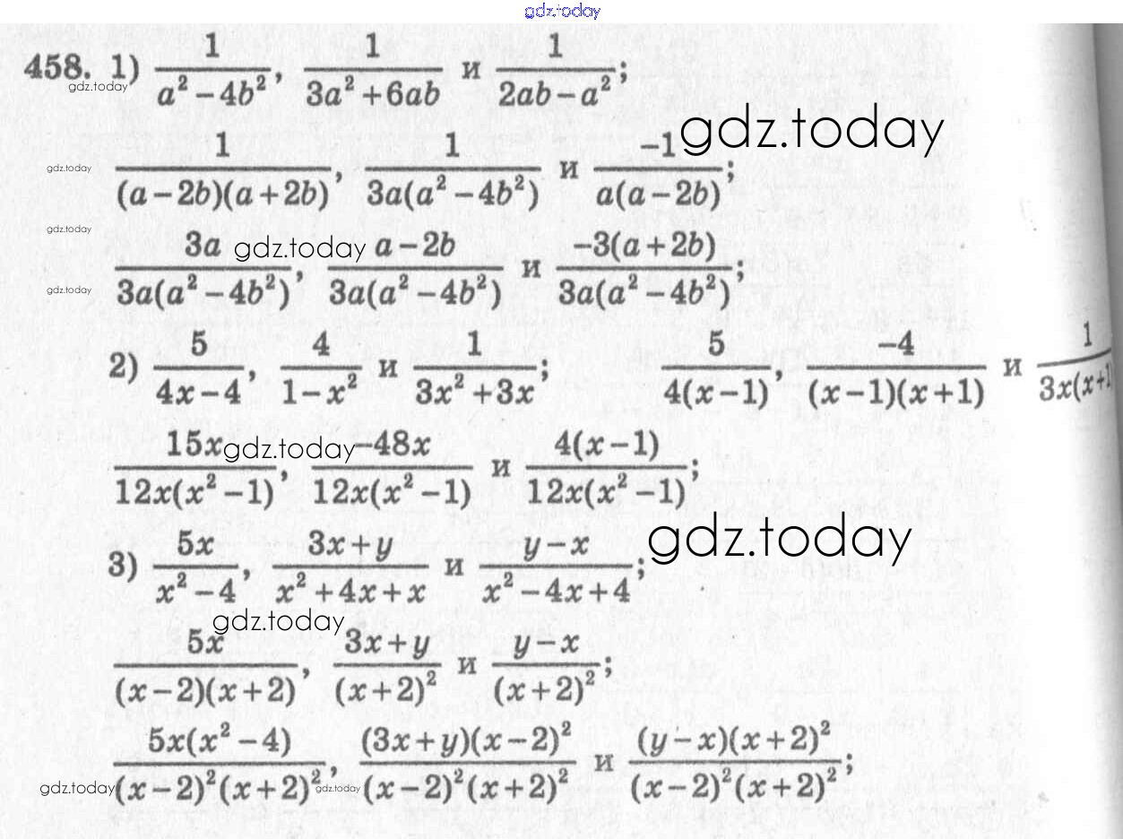 Ответы к §25. Приведение дробей к общему знаменателю Решение к главе 5. Алгебраические дроби 458 Учебнику по Алгебре для 7 класса Колягин, Ткачёва Просвещение 2014