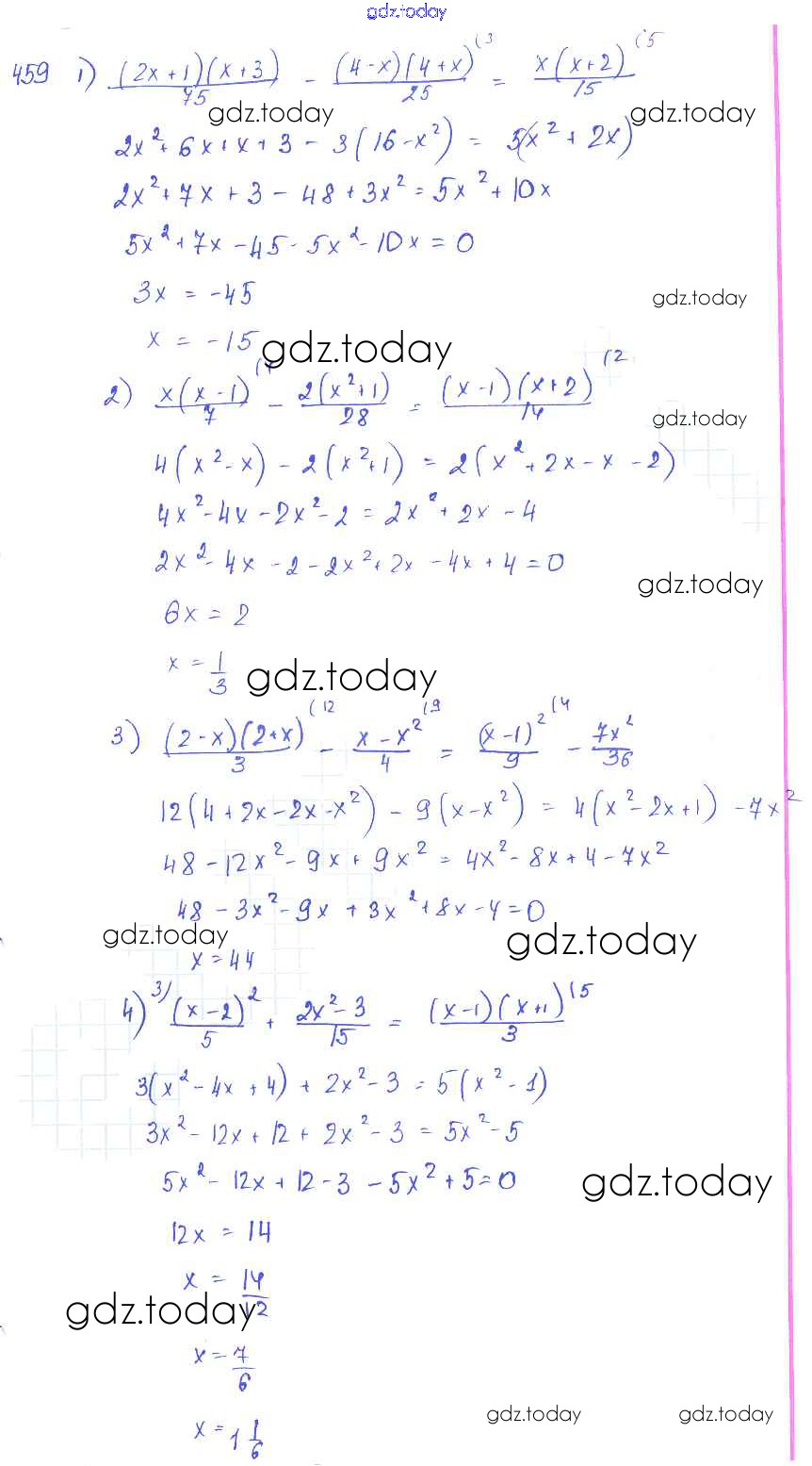 На страницах сайта gdz.today вы найдете учебный и вспомогательный материал, направленный на улучшения знаний школьной программы. ГДЗ - онлайн мир знаний §25. Приведение дробей к общему знаменателю Решение к главе 5. Алгебраические дроби 459 Учебнику по Алгебре для 7 класса Колягин, Ткачёва Просвещение 2014