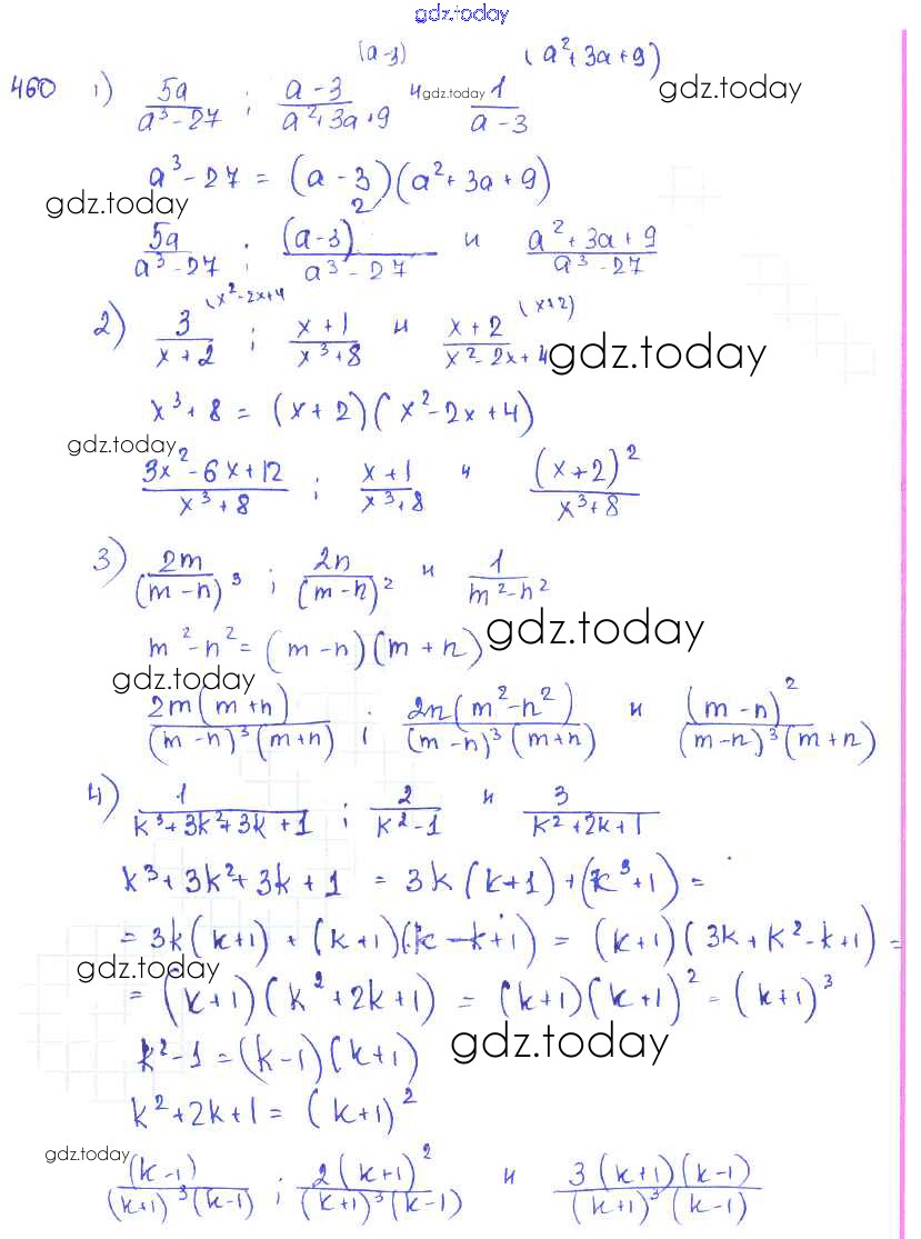 На страницах сайта gdz.today вы найдете учебный и вспомогательный материал, направленный на улучшения знаний школьной программы. ГДЗ - онлайн мир знаний §25. Приведение дробей к общему знаменателю Решение к главе 5. Алгебраические дроби 460 Учебнику по Алгебре для 7 класса Колягин, Ткачёва Просвещение 2014