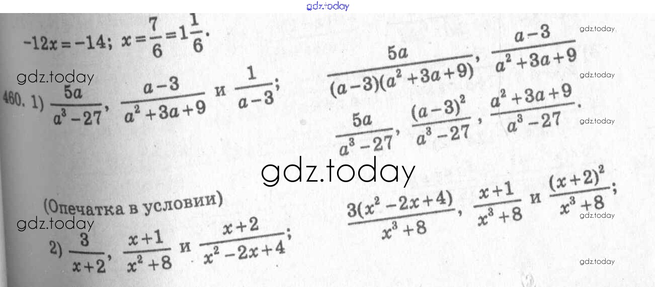 Ответы к §25. Приведение дробей к общему знаменателю Решение к главе 5. Алгебраические дроби 460 Учебнику по Алгебре для 7 класса Колягин, Ткачёва Просвещение 2014