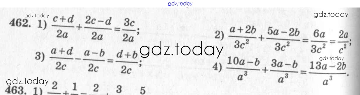 Ответы к §26. Сложение и вычитание алгебраических дробей Решение к главе 5. Алгебраические дроби 462 Учебнику по Алгебре для 7 класса Колягин, Ткачёва Просвещение 2014