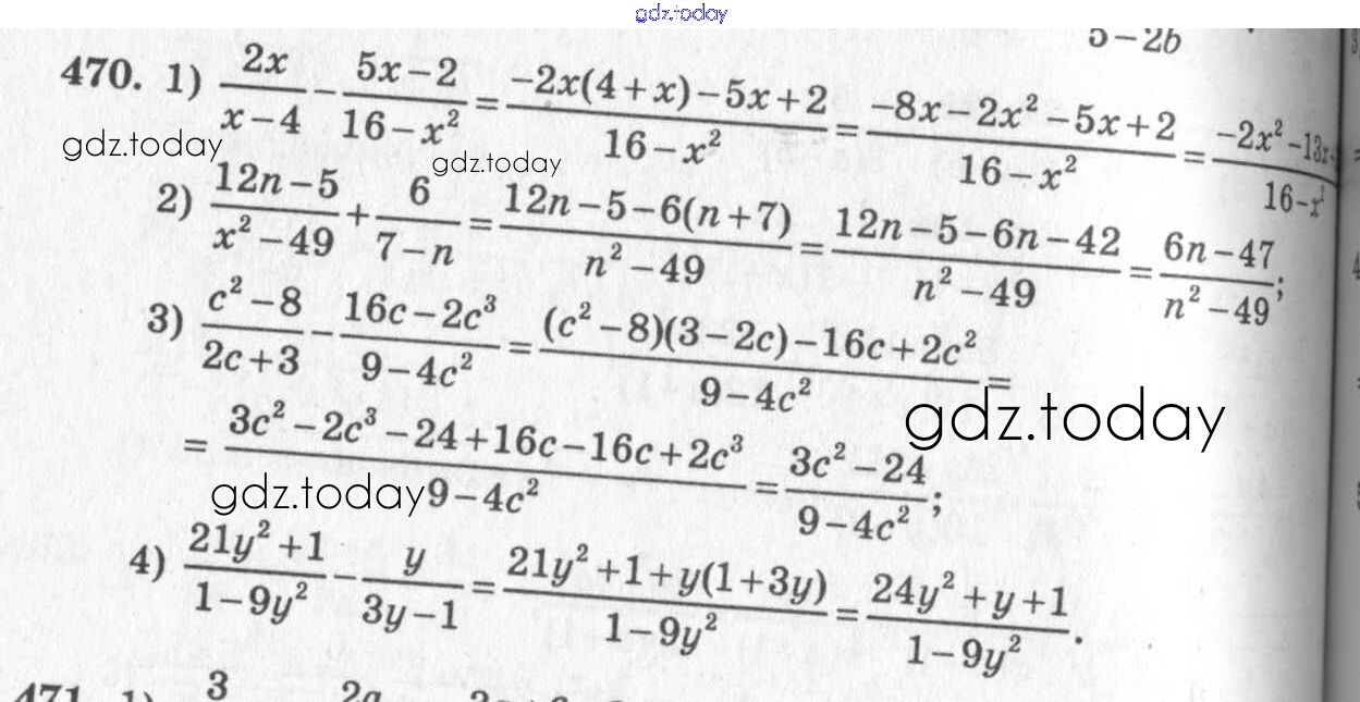 Ответы к §26. Сложение и вычитание алгебраических дробей Решение к главе 5. Алгебраические дроби 470 Учебнику по Алгебре для 7 класса Колягин, Ткачёва Просвещение 2014