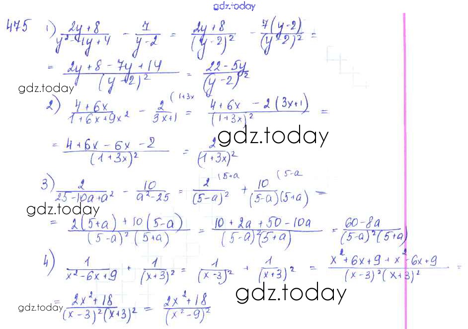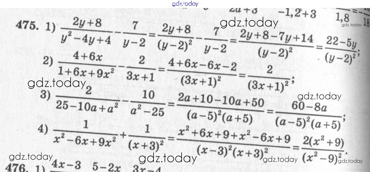 Ответы к §26. Сложение и вычитание алгебраических дробей Решение к главе 5. Алгебраические дроби 475 Учебнику по Алгебре для 7 класса Колягин, Ткачёва Просвещение 2014