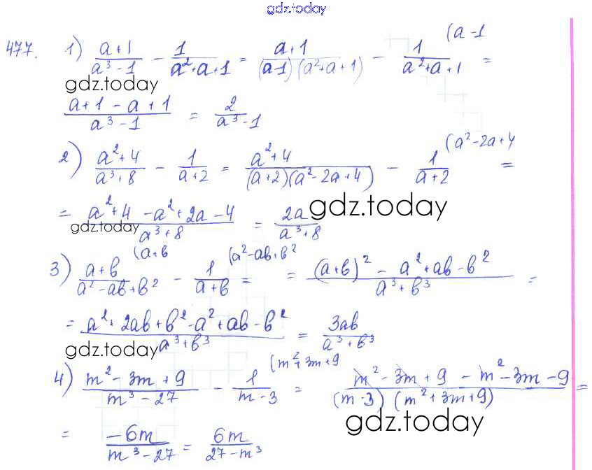 На страницах сайта gdz.today вы найдете учебный и вспомогательный материал, направленный на улучшения знаний школьной программы. ГДЗ - онлайн мир знаний §26. Сложение и вычитание алгебраических дробей Решение к главе 5. Алгебраические дроби 477 Учебнику по Алгебре для 7 класса Колягин, Ткачёва Просвещение 2014