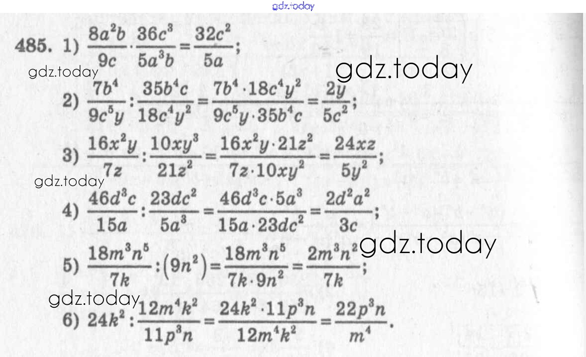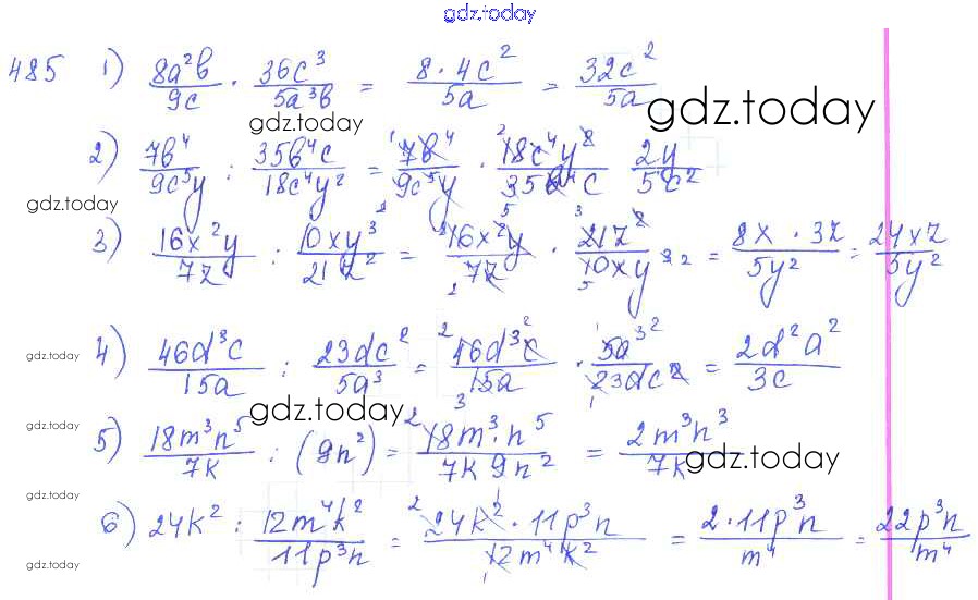 Ответы к §27. Умножение и деление алгебраических дробей Решение к главе 5. Алгебраические дроби 485 Учебнику по Алгебре для 7 класса Колягин, Ткачёва Просвещение 2014
