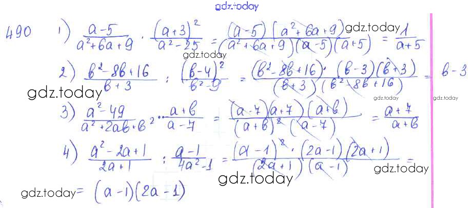 Ответы к §27. Умножение и деление алгебраических дробей Решение к главе 5. Алгебраические дроби 490 Учебнику по Алгебре для 7 класса Колягин, Ткачёва Просвещение 2014