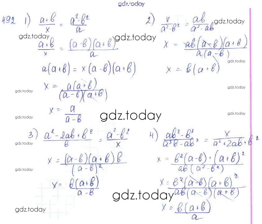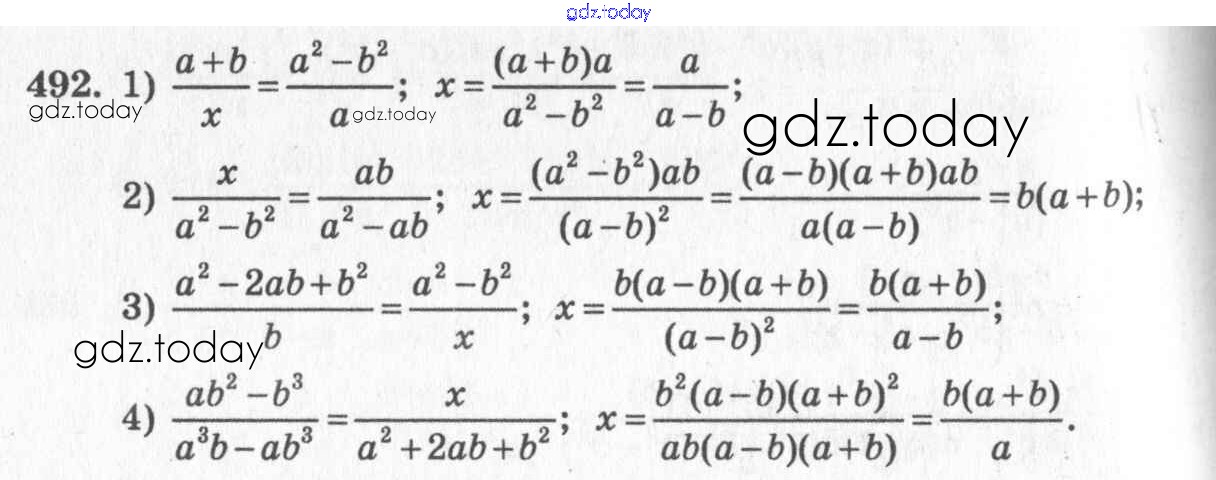 Ответы к §27. Умножение и деление алгебраических дробей Решение к главе 5. Алгебраические дроби 492 Учебнику по Алгебре для 7 класса Колягин, Ткачёва Просвещение 2014