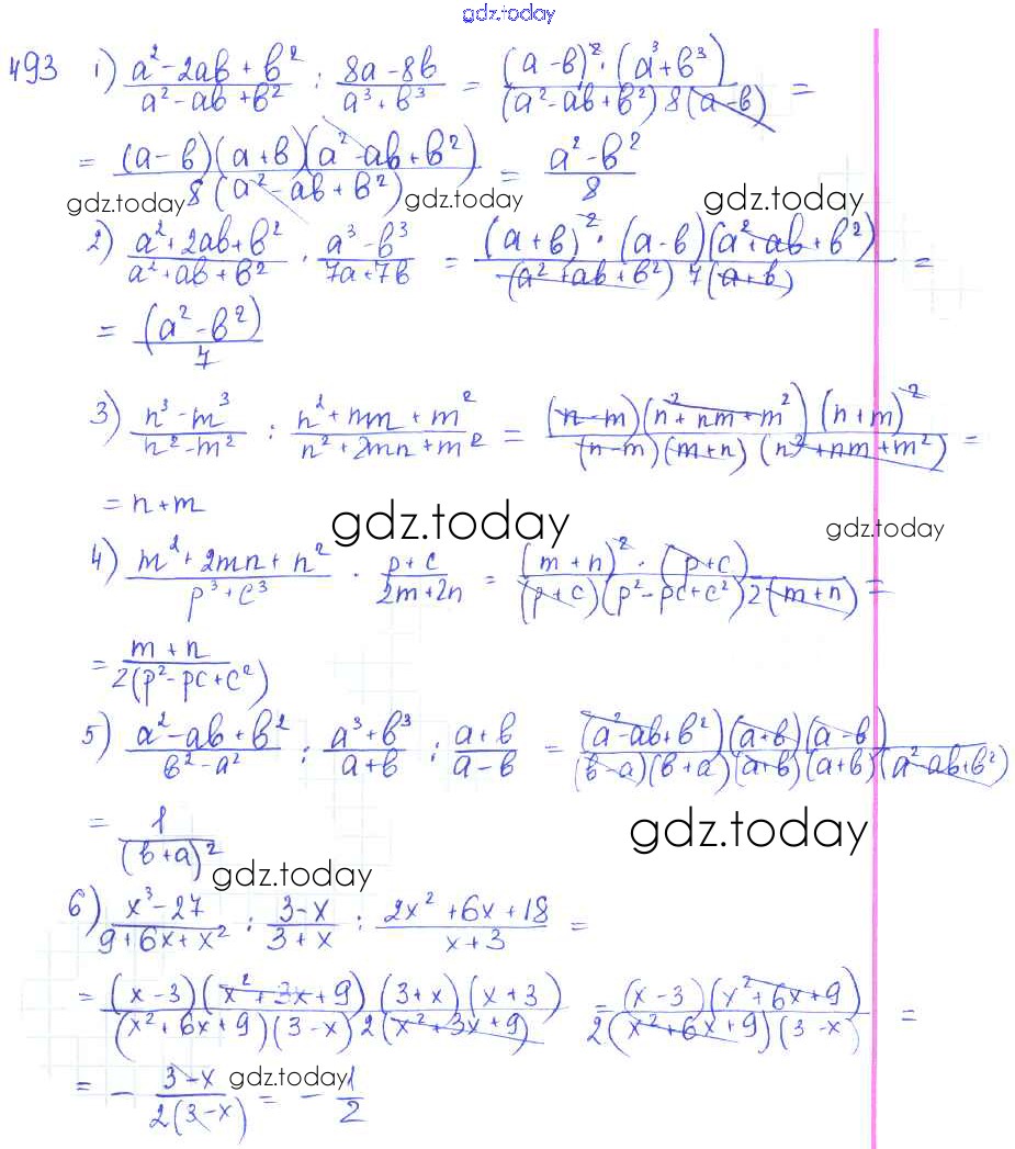 Ответы к §27. Умножение и деление алгебраических дробей Решение к главе 5. Алгебраические дроби 493 Учебнику по Алгебре для 7 класса Колягин, Ткачёва Просвещение 2014