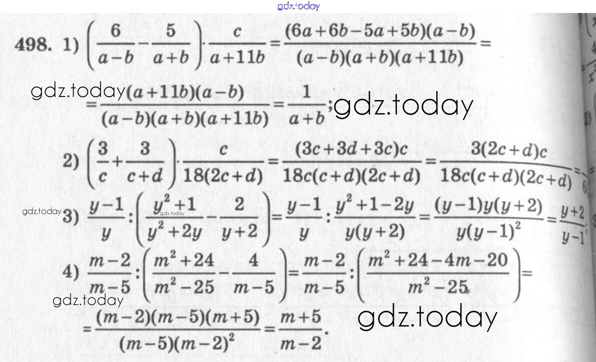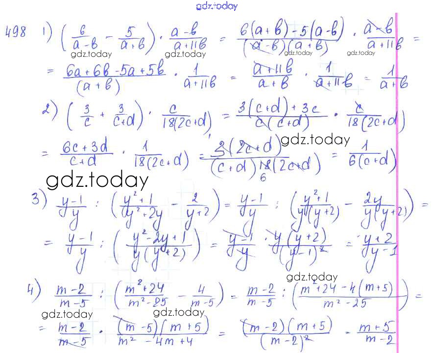 На страницах сайта gdz.today вы найдете учебный и вспомогательный материал, направленный на улучшения знаний школьной программы. ГДЗ - онлайн мир знаний §28. Совместные действия над алгебраическими дробями Решение к главе 5. Алгебраические дроби 498 Учебнику по Алгебре для 7 класса Колягин, Ткачёва Просвещение 2014