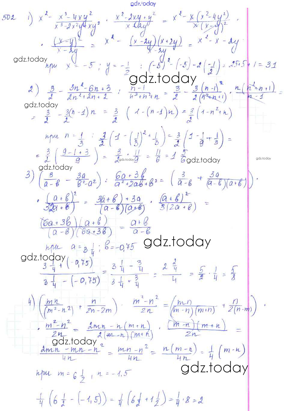 На страницах сайта gdz.today вы найдете учебный и вспомогательный материал, направленный на улучшения знаний школьной программы. ГДЗ - онлайн мир знаний §28. Совместные действия над алгебраическими дробями Решение к главе 5. Алгебраические дроби 502 Учебнику по Алгебре для 7 класса Колягин, Ткачёва Просвещение 2014