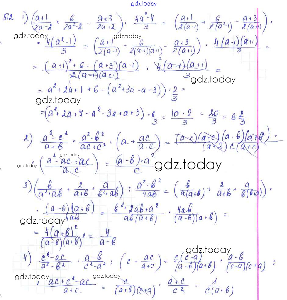 На страницах сайта gdz.today вы найдете учебный и вспомогательный материал, направленный на улучшения знаний школьной программы. ГДЗ - онлайн мир знаний Упражнения к главе 5 Решение к главе 5. Алгебраические дроби 512 Учебнику по Алгебре для 7 класса Колягин, Ткачёва Просвещение 2014