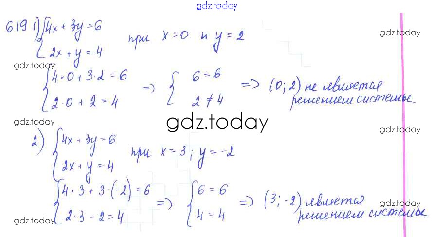 Ответы к §33. Уравнения первой степени с двумя неизвестными. Системы уравнений Глава 7. Системы двух уравнений с двумя неизвестными 619 Учебнику по Алгебре для 7 класса Колягин, Ткачёва Просвещение 2014
