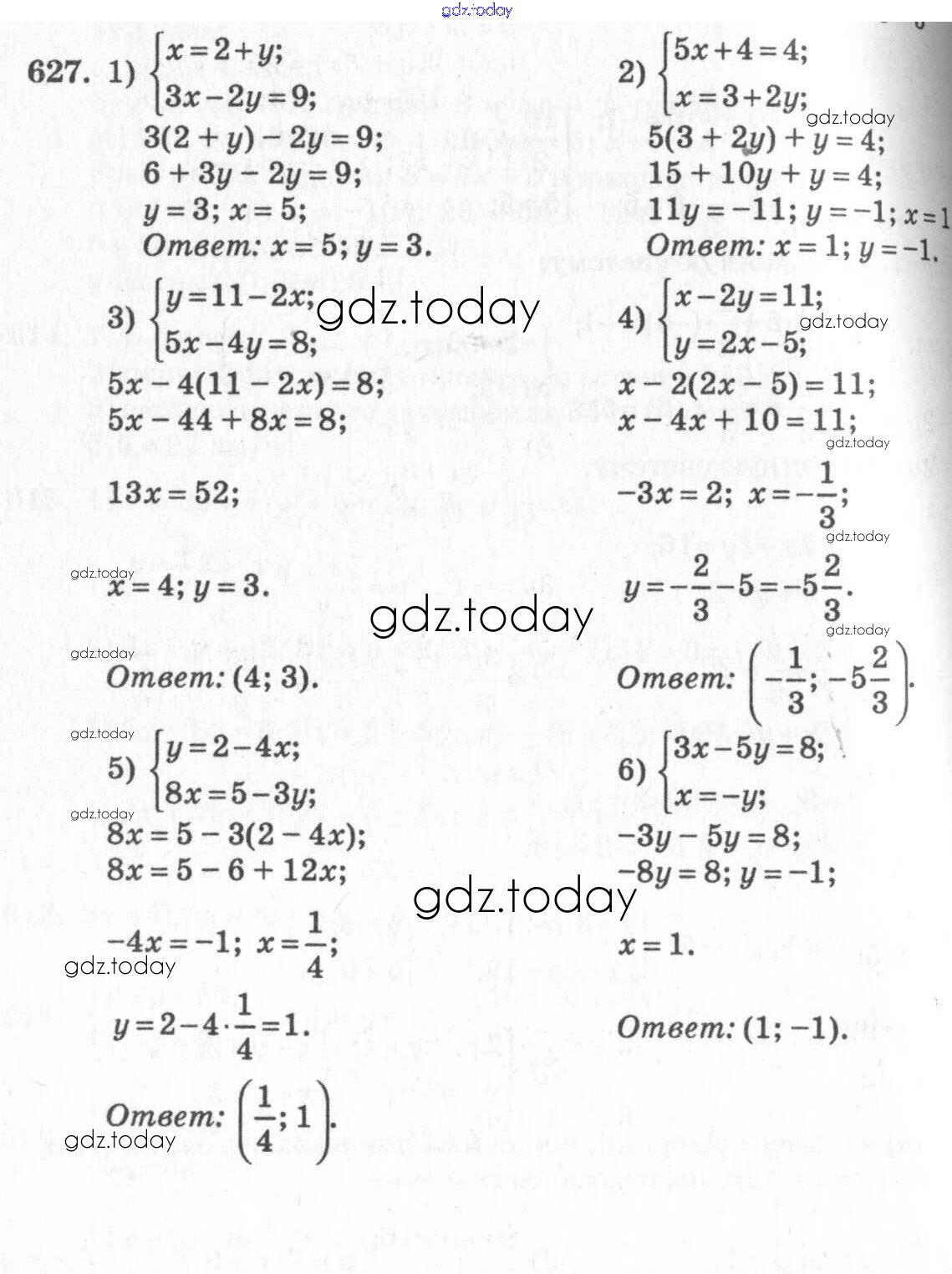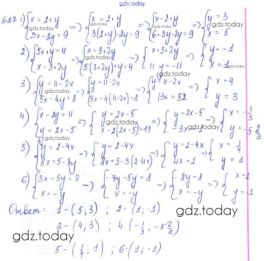 Ответы к §34. Способ подстановки Глава 7. Системы двух уравнений с двумя неизвестными 627 Учебнику по Алгебре для 7 класса Колягин, Ткачёва Просвещение 2014