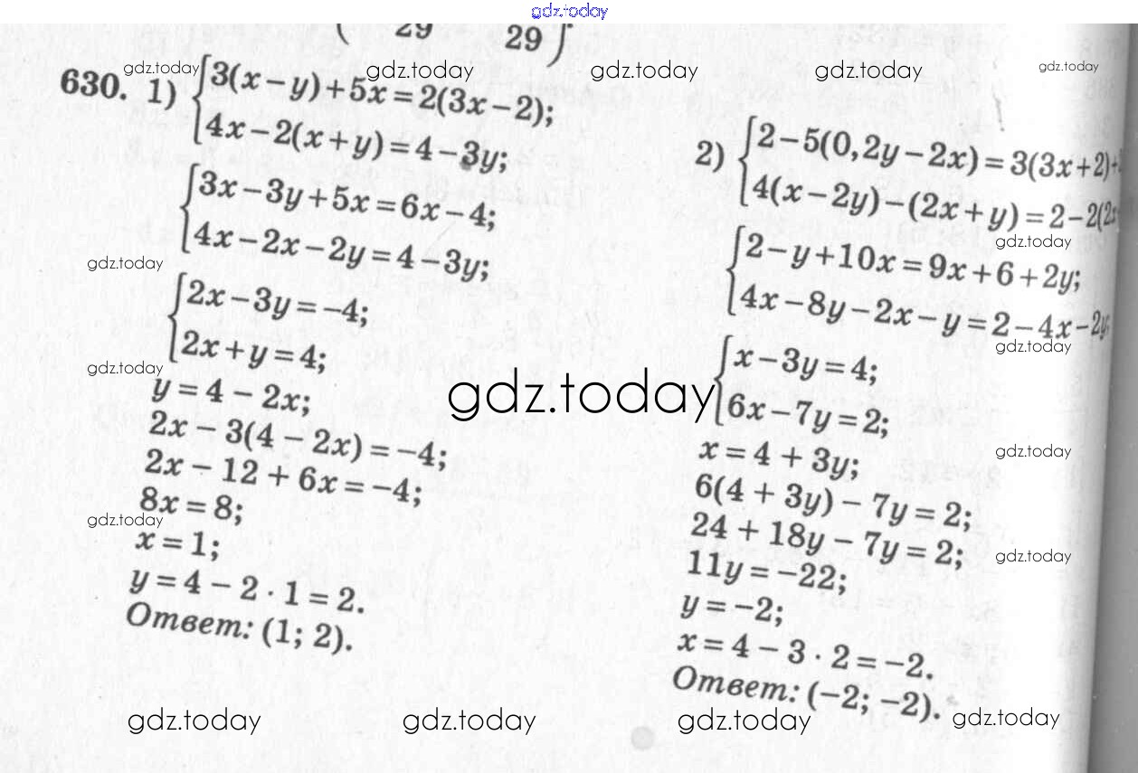 На страницах сайта gdz.today вы найдете учебный и вспомогательный материал, направленный на улучшения знаний школьной программы. ГДЗ - онлайн мир знаний §34. Способ подстановки Глава 7. Системы двух уравнений с двумя неизвестными 630 Учебнику по Алгебре для 7 класса Колягин, Ткачёва Просвещение 2014