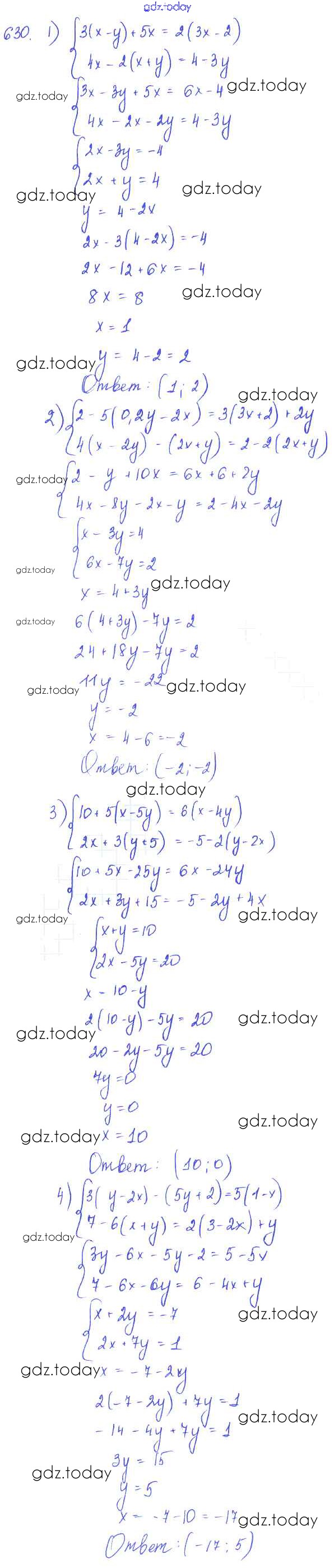 Ответы к §34. Способ подстановки Глава 7. Системы двух уравнений с двумя неизвестными 630 Учебнику по Алгебре для 7 класса Колягин, Ткачёва Просвещение 2014