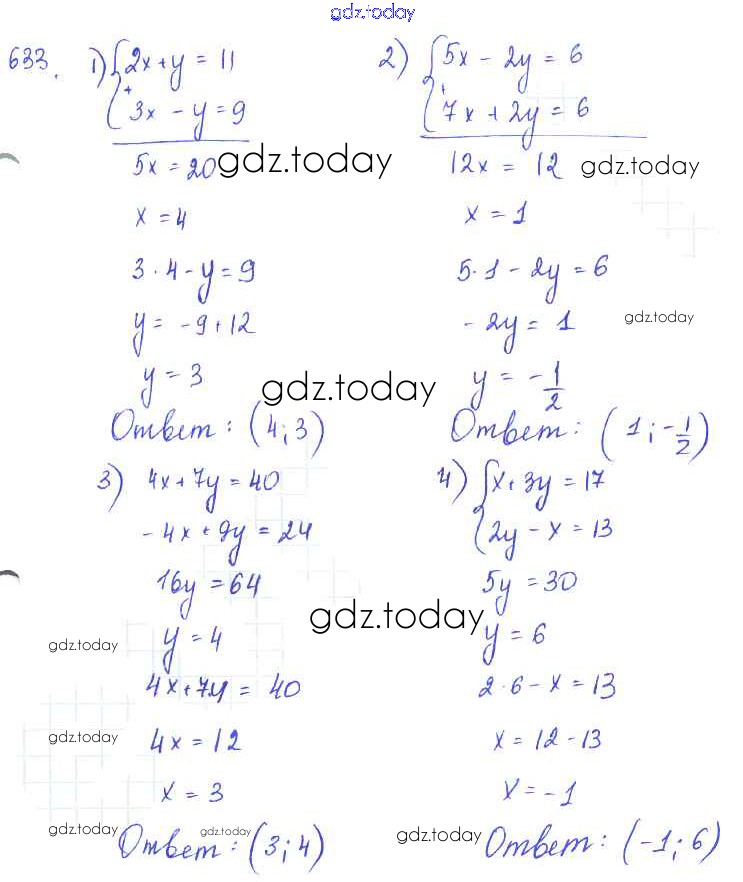 Ответы к §35. Способ сложения Глава 7. Системы двух уравнений с двумя неизвестными 633 Учебнику по Алгебре для 7 класса Колягин, Ткачёва Просвещение 2014