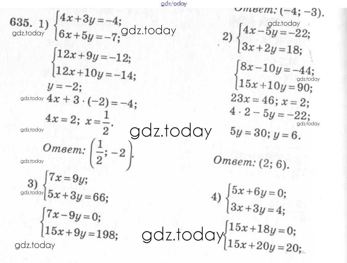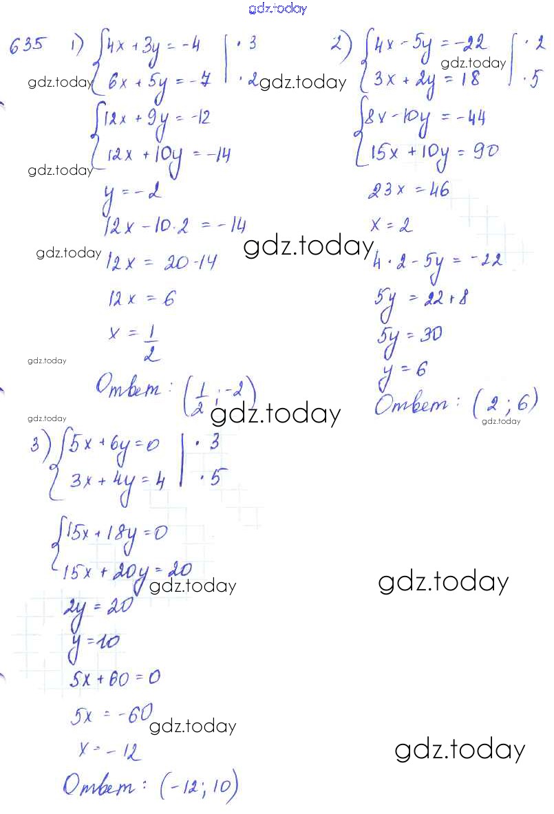 Ответы к §35. Способ сложения Глава 7. Системы двух уравнений с двумя неизвестными 635 Учебнику по Алгебре для 7 класса Колягин, Ткачёва Просвещение 2014