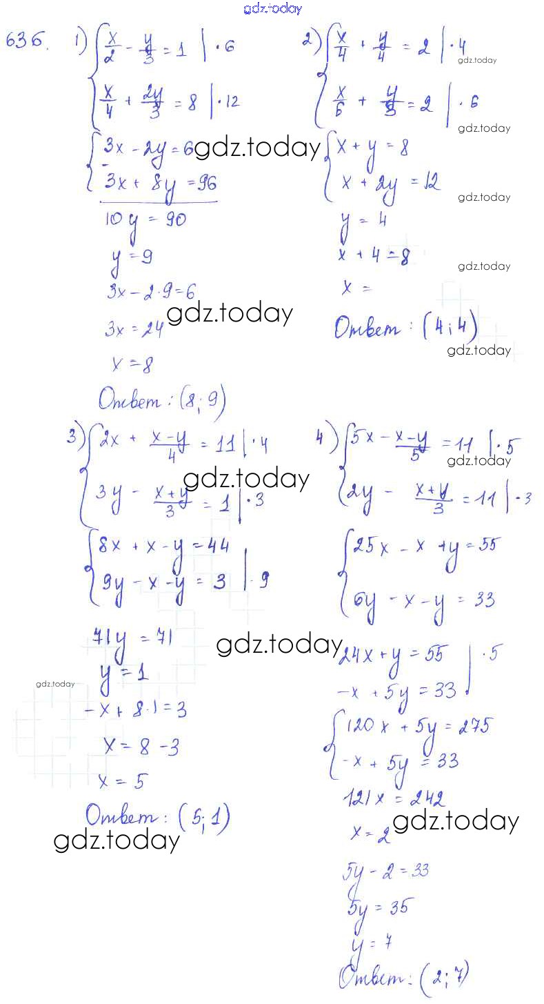 Ответы к §35. Способ сложения Глава 7. Системы двух уравнений с двумя неизвестными 636 Учебнику по Алгебре для 7 класса Колягин, Ткачёва Просвещение 2014