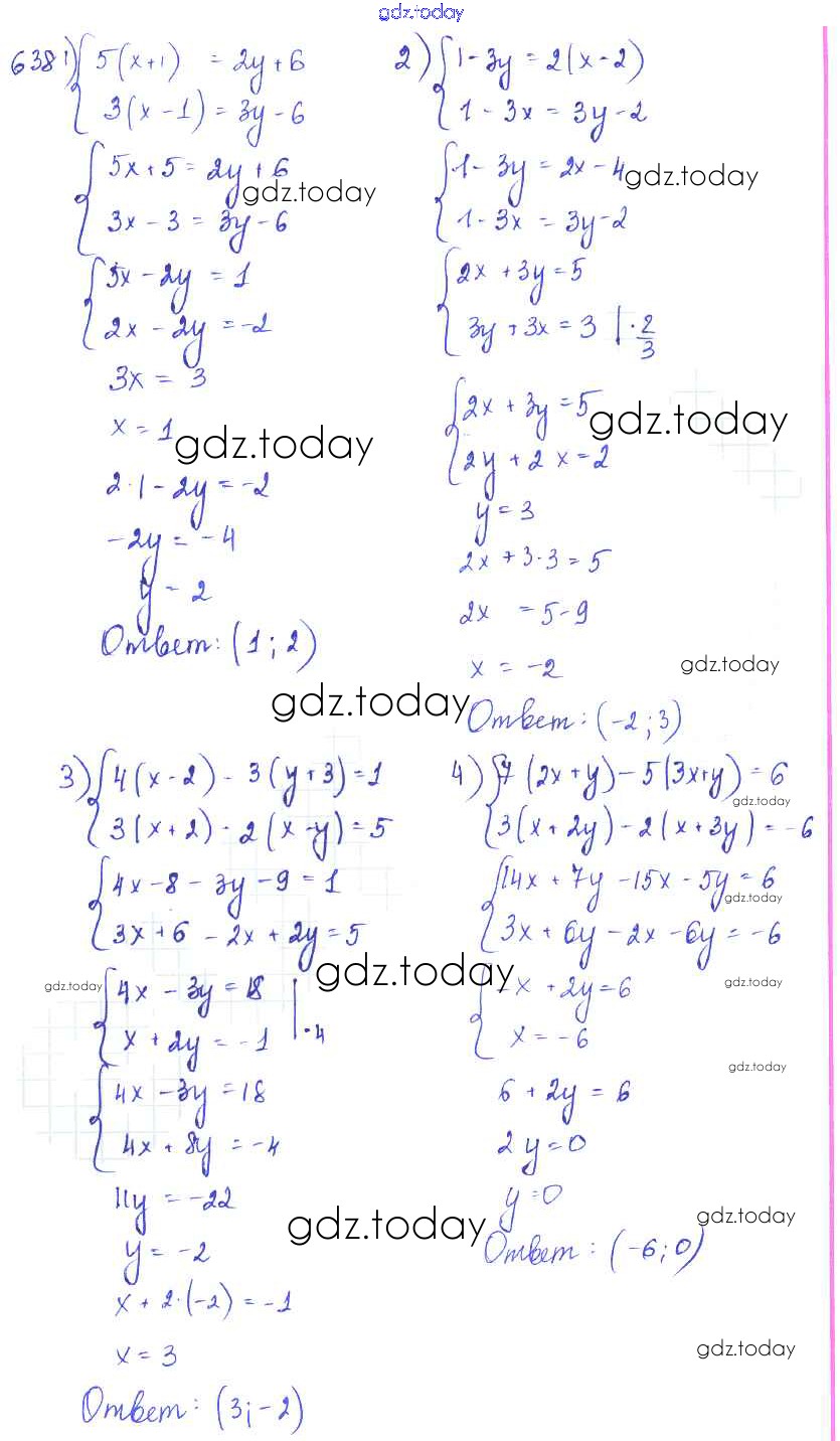 На страницах сайта gdz.today вы найдете учебный и вспомогательный материал, направленный на улучшения знаний школьной программы. ГДЗ - онлайн мир знаний §35. Способ сложения Глава 7. Системы двух уравнений с двумя неизвестными 638 Учебнику по Алгебре для 7 класса Колягин, Ткачёва Просвещение 2014