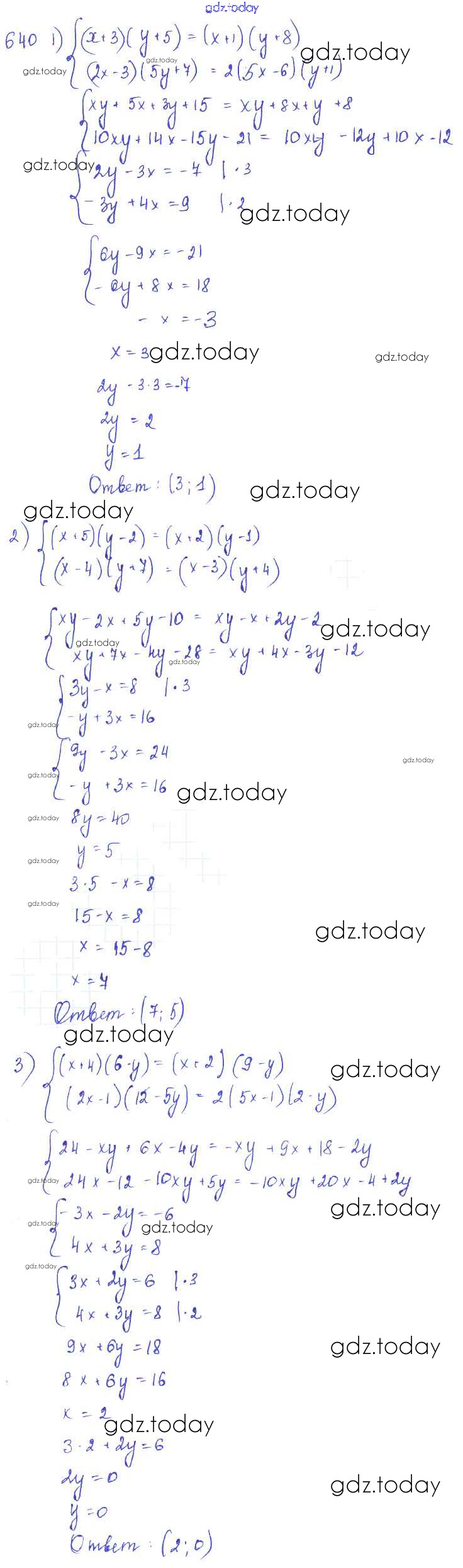 На страницах сайта gdz.today вы найдете учебный и вспомогательный материал, направленный на улучшения знаний школьной программы. ГДЗ - онлайн мир знаний §35. Способ сложения Глава 7. Системы двух уравнений с двумя неизвестными 640 Учебнику по Алгебре для 7 класса Колягин, Ткачёва Просвещение 2014