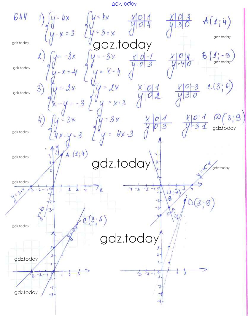 Ответы к §36. Графический способ решения систем уравнений Глава 7. Системы двух уравнений с двумя неизвестными 644 Учебнику по Алгебре для 7 класса Колягин, Ткачёва Просвещение 2014