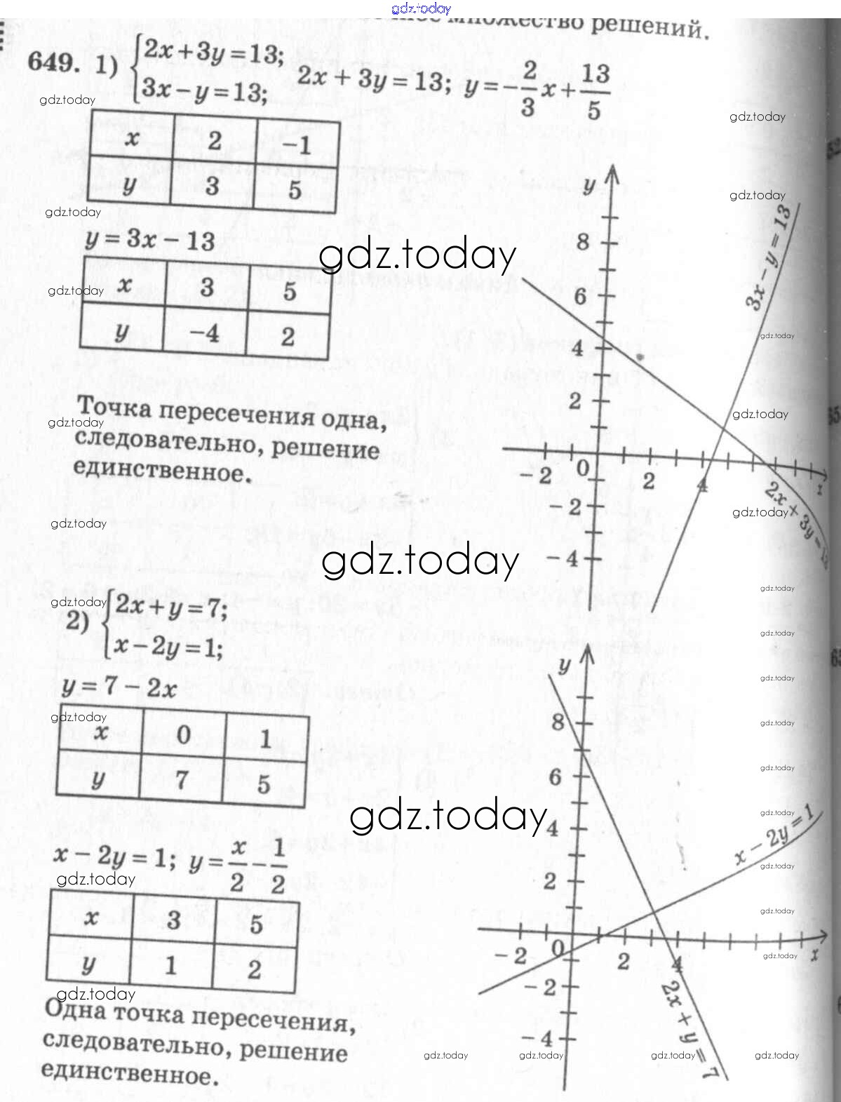 Ответы к §36. Графический способ решения систем уравнений Глава 7. Системы двух уравнений с двумя неизвестными 649 Учебнику по Алгебре для 7 класса Колягин, Ткачёва Просвещение 2014