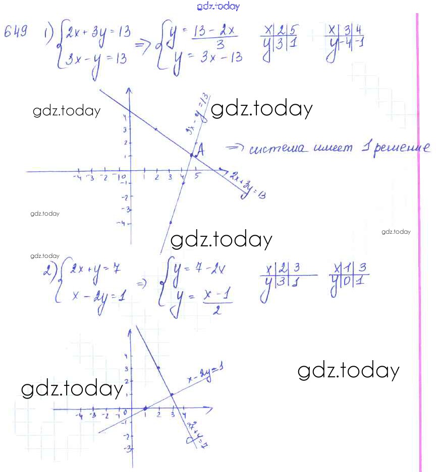На страницах сайта gdz.today вы найдете учебный и вспомогательный материал, направленный на улучшения знаний школьной программы. ГДЗ - онлайн мир знаний §36. Графический способ решения систем уравнений Глава 7. Системы двух уравнений с двумя неизвестными 649 Учебнику по Алгебре для 7 класса Колягин, Ткачёва Просвещение 2014