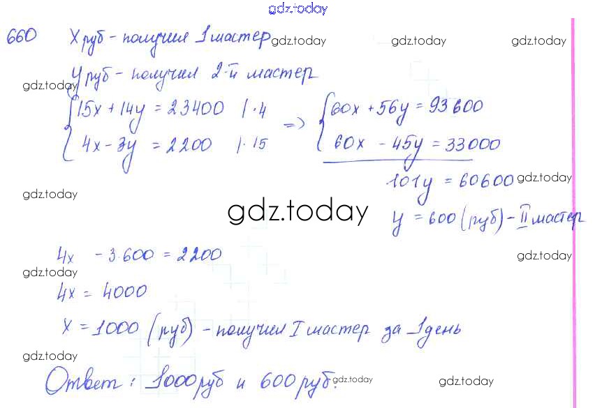 Ответы к §37. Решение задач с помощью систем уравнений Глава 7. Системы двух уравнений с двумя неизвестными 660 Учебнику по Алгебре для 7 класса Колягин, Ткачёва Просвещение 2014