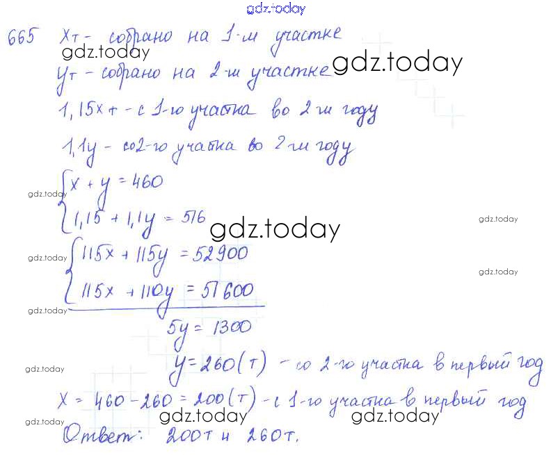 Ответы к §37. Решение задач с помощью систем уравнений Глава 7. Системы двух уравнений с двумя неизвестными 665 Учебнику по Алгебре для 7 класса Колягин, Ткачёва Просвещение 2014