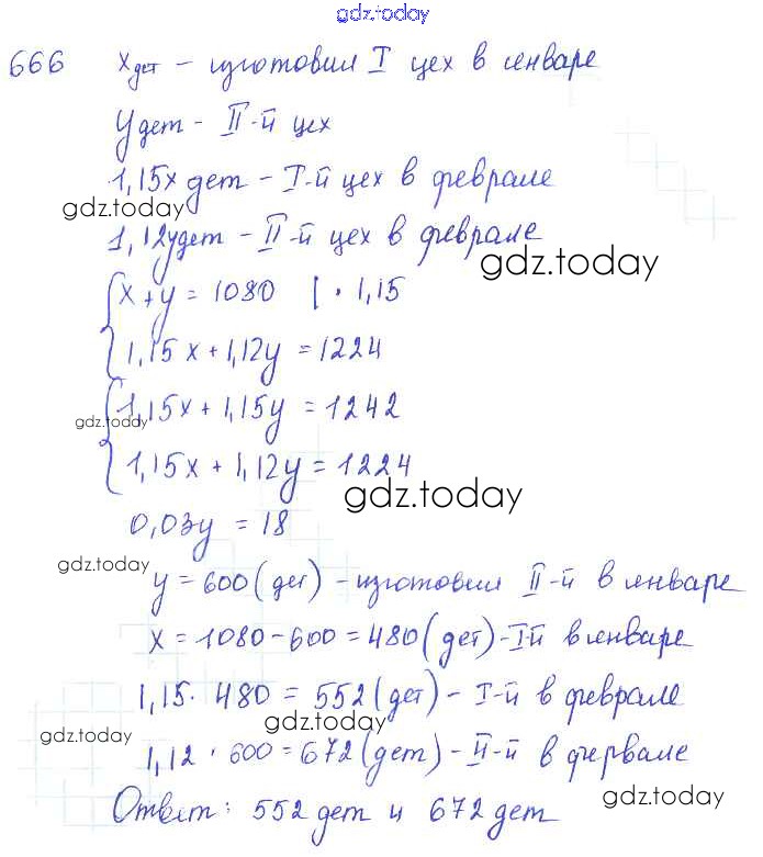 Ответы к §37. Решение задач с помощью систем уравнений Глава 7. Системы двух уравнений с двумя неизвестными 666 Учебнику по Алгебре для 7 класса Колягин, Ткачёва Просвещение 2014