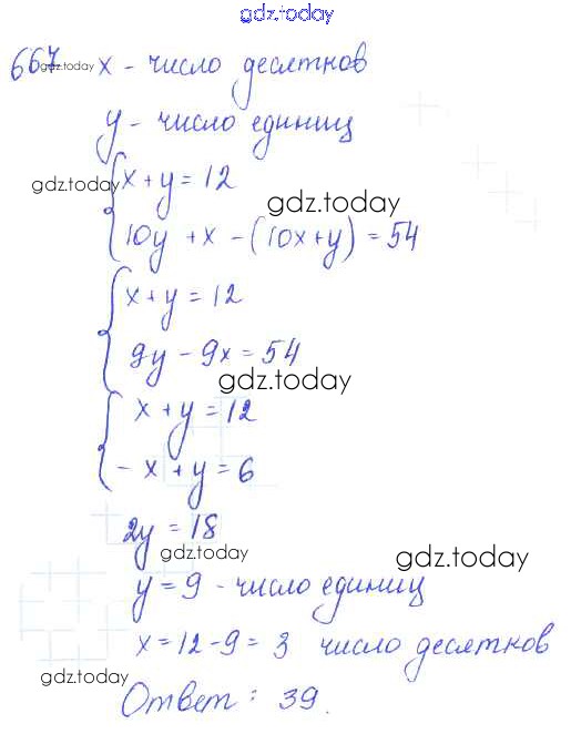 Ответы к §37. Решение задач с помощью систем уравнений Глава 7. Системы двух уравнений с двумя неизвестными 667 Учебнику по Алгебре для 7 класса Колягин, Ткачёва Просвещение 2014