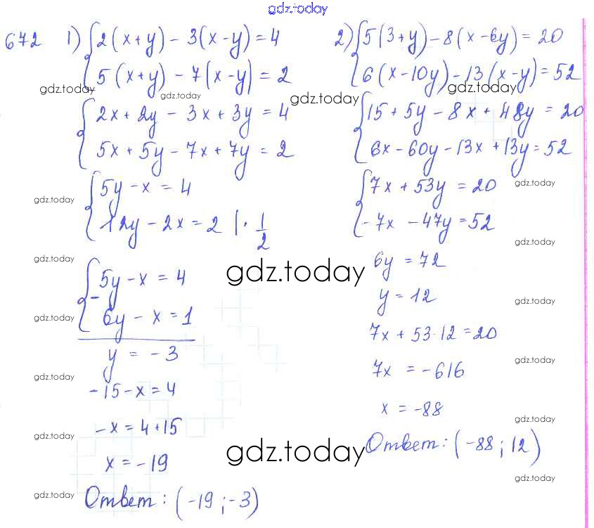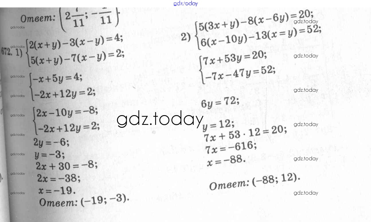 Ответы к Упражнения к главе 7 Глава 7. Системы двух уравнений с двумя неизвестными 672 Учебнику по Алгебре для 7 класса Колягин, Ткачёва Просвещение 2014