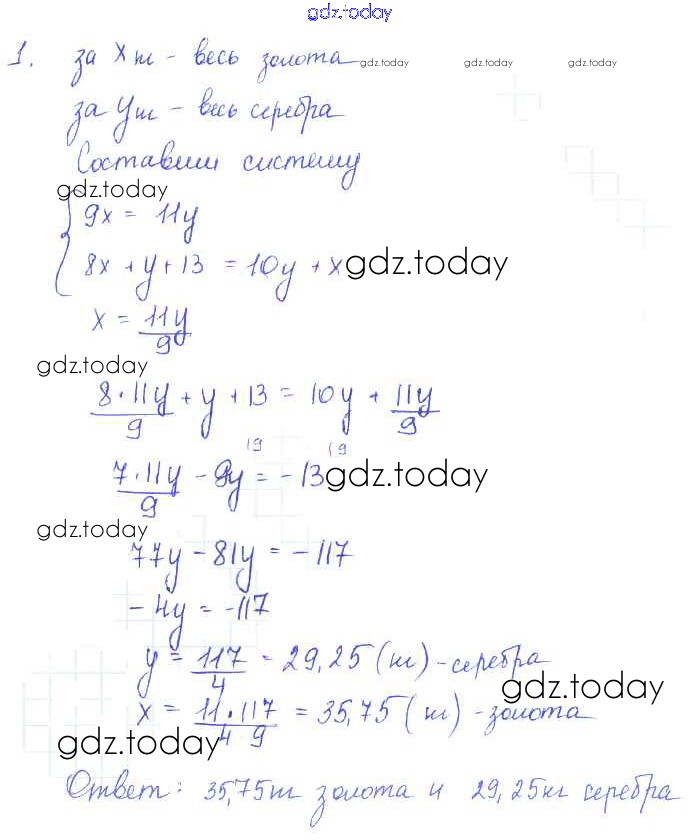 Ответы к Старинные задачи Глава 7. Системы двух уравнений с двумя неизвестными 1 Учебнику по Алгебре для 7 класса Колягин, Ткачёва Просвещение 2014