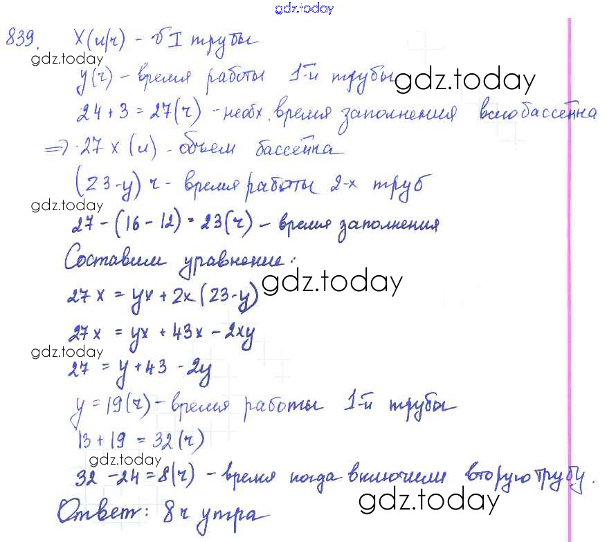 Ответы к Задачи для внеклассной работы 839 Учебнику по Алгебре для 7 класса Колягин, Ткачёва Просвещение 2014
