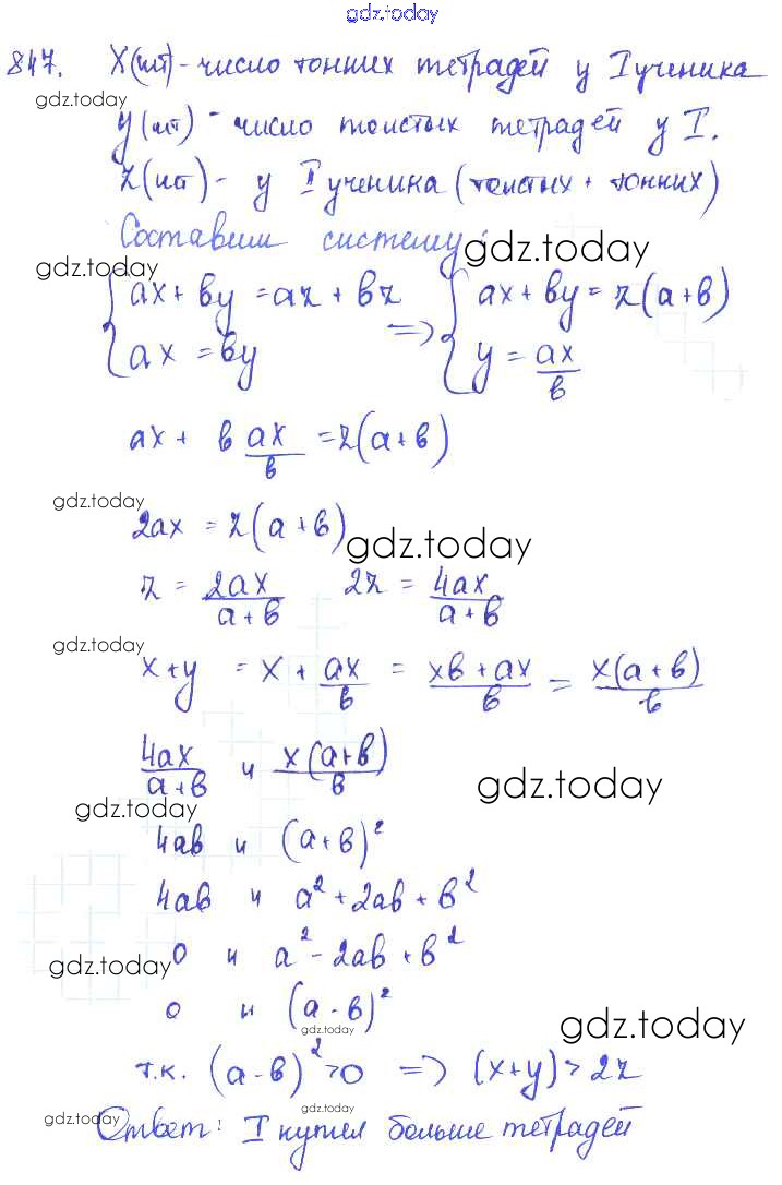 Ответы к Задачи для внеклассной работы 847 Учебнику по Алгебре для 7 класса Колягин, Ткачёва Просвещение 2014