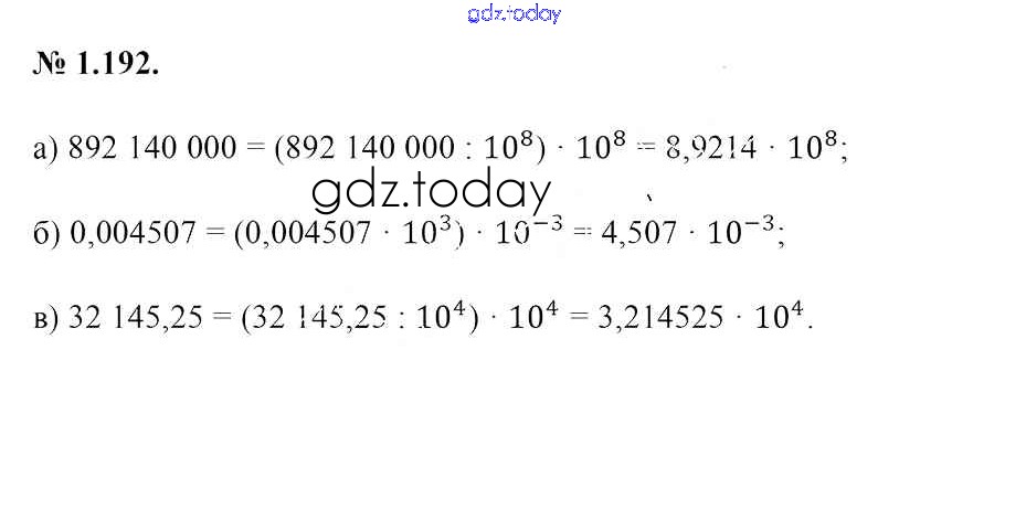Ответы к Решение к главе 1 1.192 Учебнику по Алгебре для 7 класса Арефьева, Пирютко Народная асвета 2017