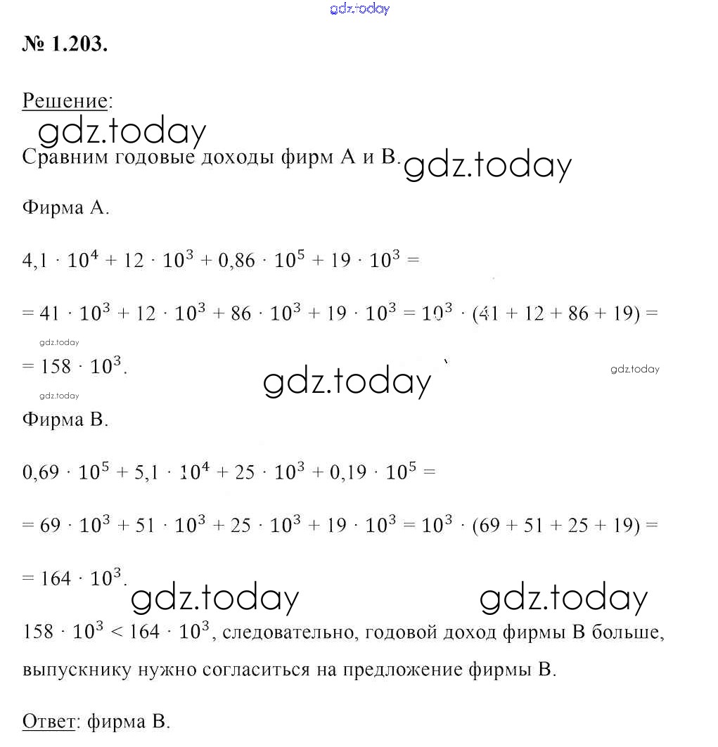 Ответы к Решение к главе 1 1.203 Учебнику по Алгебре для 7 класса Арефьева, Пирютко Народная асвета 2017