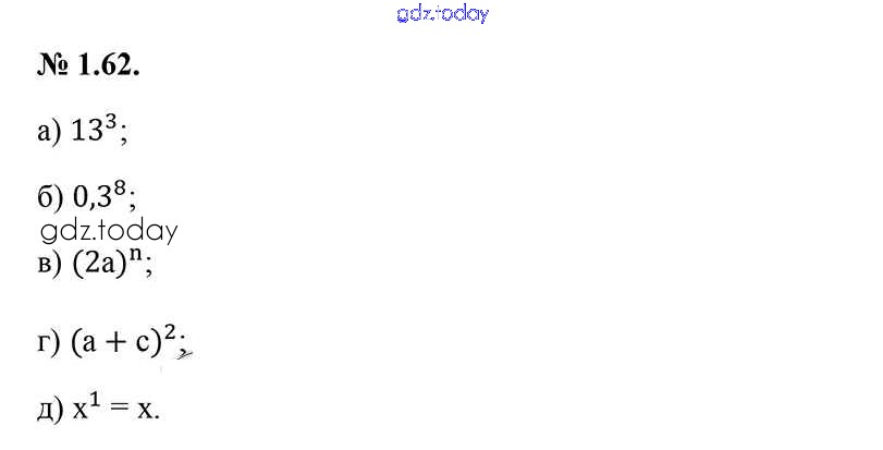 На страницах сайта gdz.today вы найдете учебный и вспомогательный материал, направленный на улучшения знаний школьной программы. ГДЗ - онлайн мир знаний Решение к главе 1 1.62 Учебнику по Алгебре для 7 класса Арефьева, Пирютко Народная асвета 2017