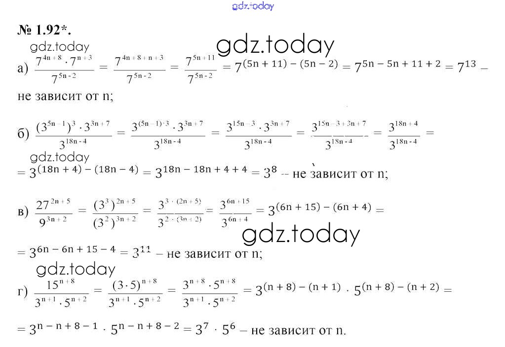 На страницах сайта gdz.today вы найдете учебный и вспомогательный материал, направленный на улучшения знаний школьной программы. ГДЗ - онлайн мир знаний Решение к главе 1 1.92 Учебнику по Алгебре для 7 класса Арефьева, Пирютко Народная асвета 2017