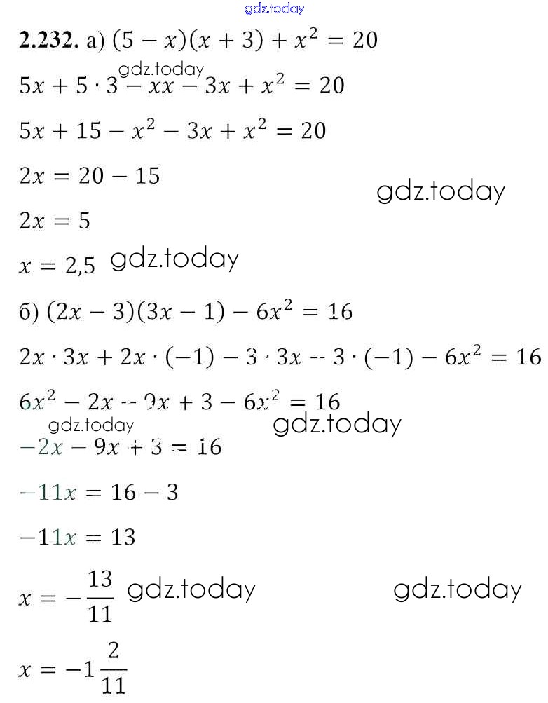 На страницах сайта gdz.today вы найдете учебный и вспомогательный материал, направленный на улучшения знаний школьной программы. ГДЗ - онлайн мир знаний Решение к главе 2 2.232 Учебнику по Алгебре для 7 класса Арефьева, Пирютко Народная асвета 2017