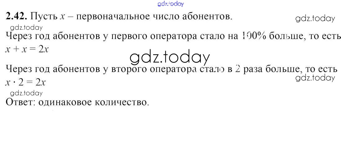 Ответы к Решение к главе 2 2.42 Учебнику по Алгебре для 7 класса Арефьева, Пирютко Народная асвета 2017