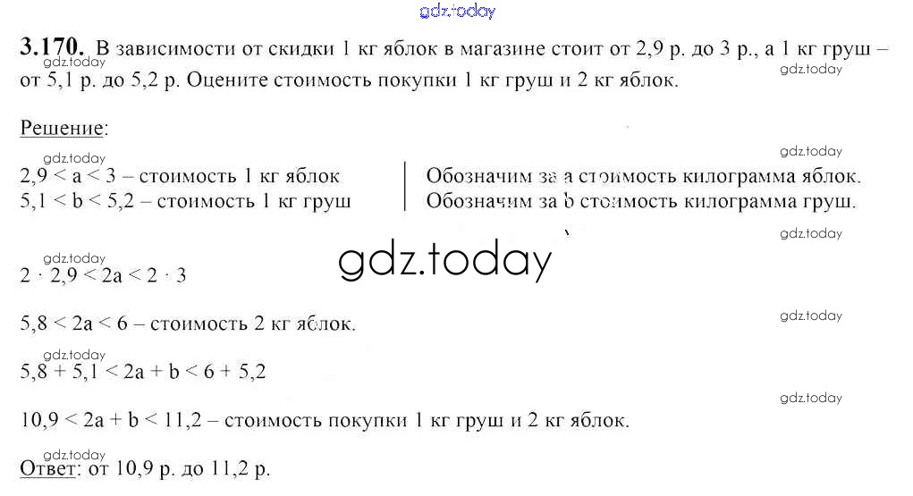 Ответы к Решение к главе 3 3.170 Учебнику по Алгебре для 7 класса Арефьева, Пирютко Народная асвета 2017