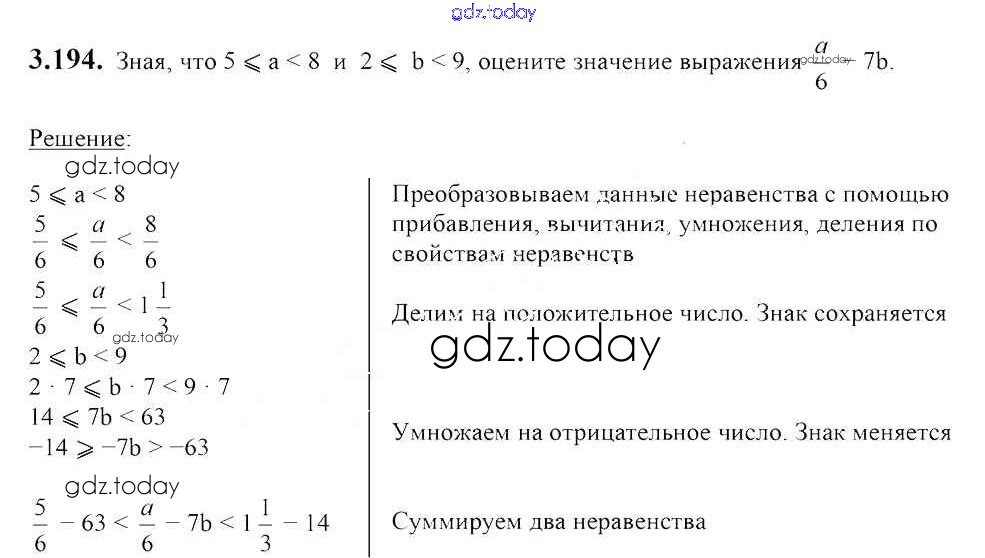 На страницах сайта gdz.today вы найдете учебный и вспомогательный материал, направленный на улучшения знаний школьной программы. ГДЗ - онлайн мир знаний Решение к главе 3 3.194 Учебнику по Алгебре для 7 класса Арефьева, Пирютко Народная асвета 2017