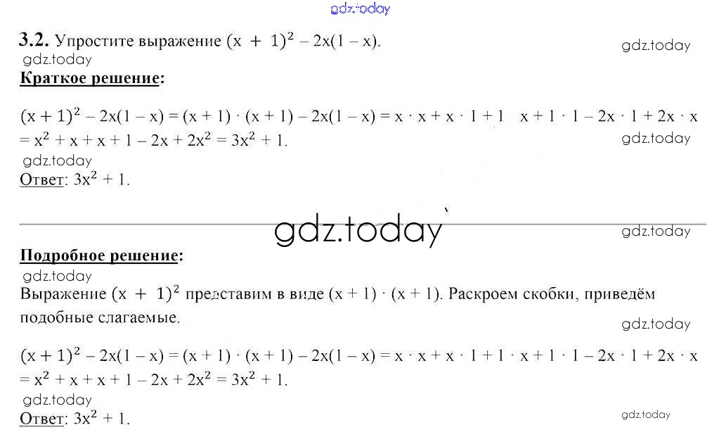 На страницах сайта gdz.today вы найдете учебный и вспомогательный материал, направленный на улучшения знаний школьной программы. ГДЗ - онлайн мир знаний Решение к главе 3 3.2 Учебнику по Алгебре для 7 класса Арефьева, Пирютко Народная асвета 2017
