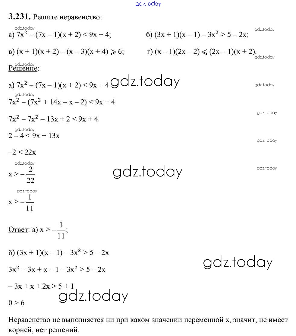 На страницах сайта gdz.today вы найдете учебный и вспомогательный материал, направленный на улучшения знаний школьной программы. ГДЗ - онлайн мир знаний Решение к главе 3 3.231 Учебнику по Алгебре для 7 класса Арефьева, Пирютко Народная асвета 2017