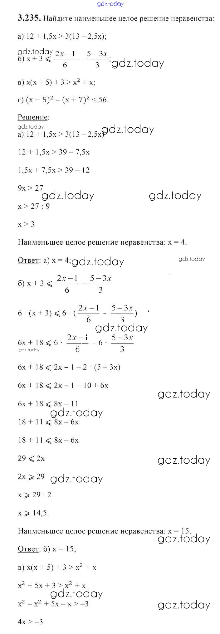 На страницах сайта gdz.today вы найдете учебный и вспомогательный материал, направленный на улучшения знаний школьной программы. ГДЗ - онлайн мир знаний Решение к главе 3 3.235 Учебнику по Алгебре для 7 класса Арефьева, Пирютко Народная асвета 2017