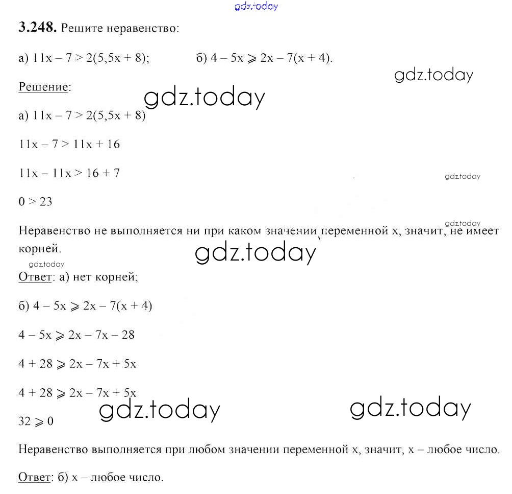 На страницах сайта gdz.today вы найдете учебный и вспомогательный материал, направленный на улучшения знаний школьной программы. ГДЗ - онлайн мир знаний Решение к главе 3 3.248 Учебнику по Алгебре для 7 класса Арефьева, Пирютко Народная асвета 2017