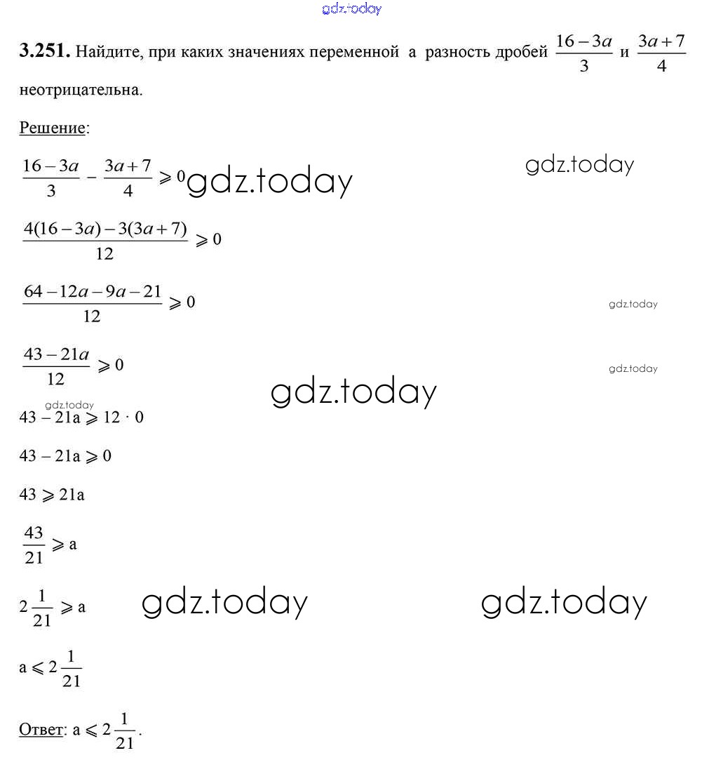 Ответы к Решение к главе 3 3.251 Учебнику по Алгебре для 7 класса Арефьева, Пирютко Народная асвета 2017