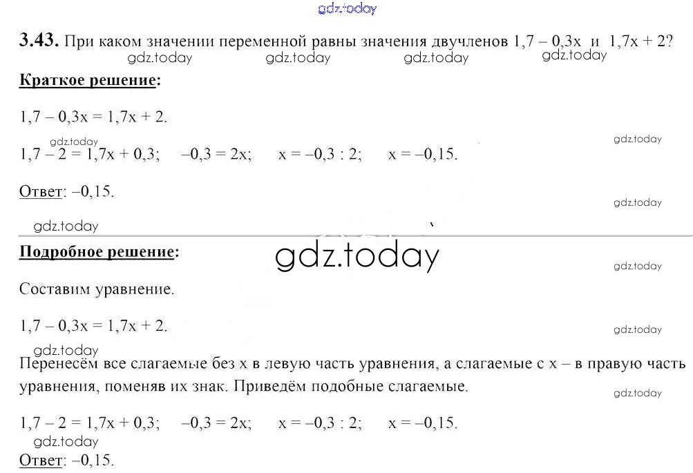 На страницах сайта gdz.today вы найдете учебный и вспомогательный материал, направленный на улучшения знаний школьной программы. ГДЗ - онлайн мир знаний Решение к главе 3 3.43 Учебнику по Алгебре для 7 класса Арефьева, Пирютко Народная асвета 2017